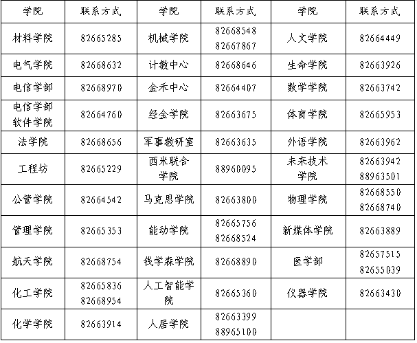 各学院联系电话如下(请在上班时间致电:上午08:00-12:00、下午14:00-18:00)