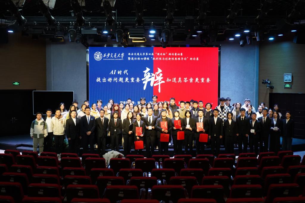 2025年11月20日晚,西安交通大学"国运杯"第四届辩论赛初赛暨"批判性与创新性思维导论"课程辩论赛在西安交通大学丝路大讲堂教室举行。中华网、哔哩哔哩平台和微博平台对本次辩论赛进行了现场直播,累计观看人数超41万人次,累计获赞超3.6万人次。华语辩论赛著名教练及评委、航天学院党委书记张爱萍,人文学院副院长、"批判性与创新性思维导论"课程负责人王伟,“国运杯”辩论赛主要负责人、音乐教育中心支部书记曹耿献,校辩论队队长王羽凡担任评委。我校教育基金会副秘书长赵力,教务处主管杨程,中华网陕西频道总编辑王应以及文化艺术报全媒体记者梁飞燕出席比赛。